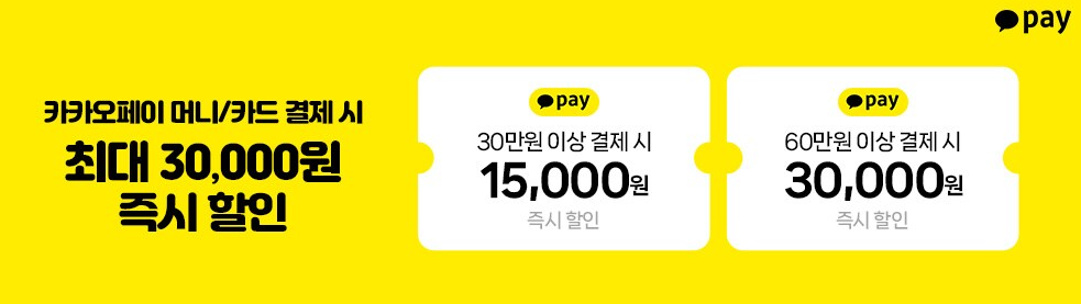 9월 30일까지 카카오페이로 왕복 일정을 예매할 경우에 50% 할인에 더해서 추가로 카카오페이 3만원 즉시할인 혜택을 받을 수 있습니다. 2024년 9월 20일부터 12월 말일까지 탑승일정에 대해서 추가할인이 적용됩니다.