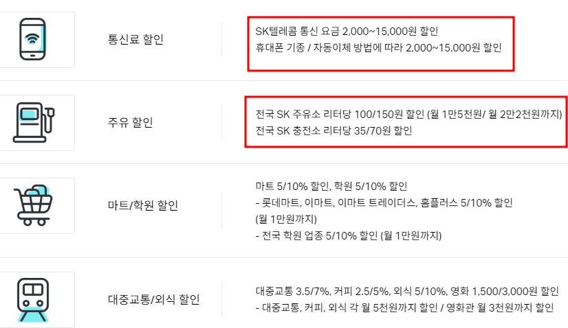 - SK주유소 주유 시 리터당 100원~150원 청구할인