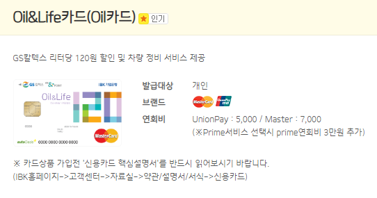 IBK 기업은행 Oil & Life 카드(Oil카드)